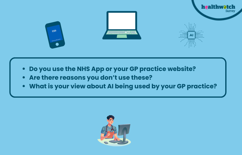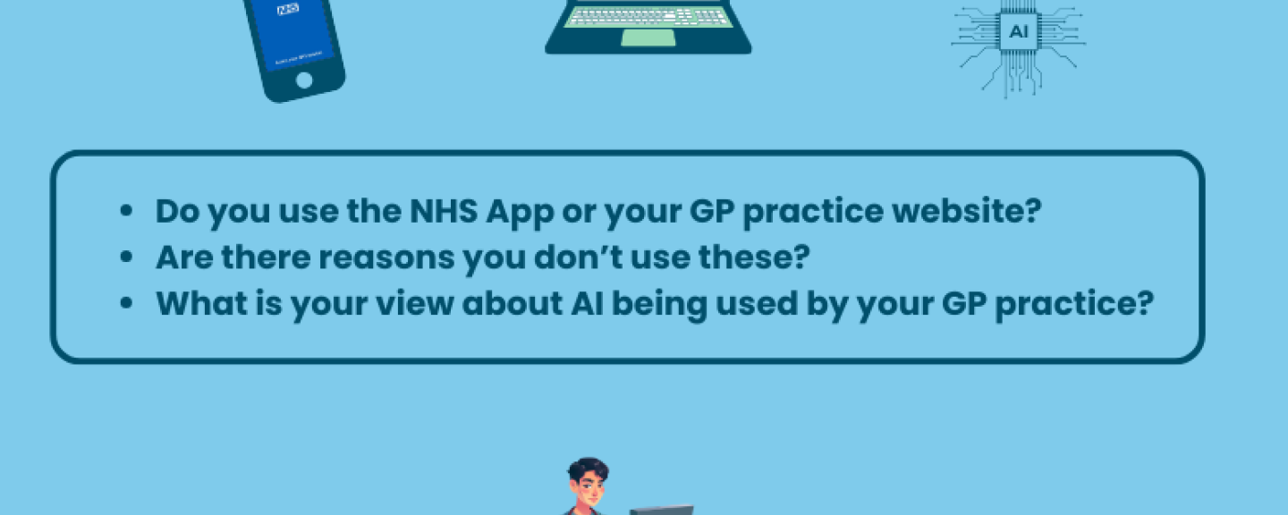 We would still love to hear your experience of online access to GP services (using your GP practice website, the NHS App or other online services), if you manage your health care needs with your GP practice using online technology and your views on the use of AI (Artificial Intelligence) within general practice.